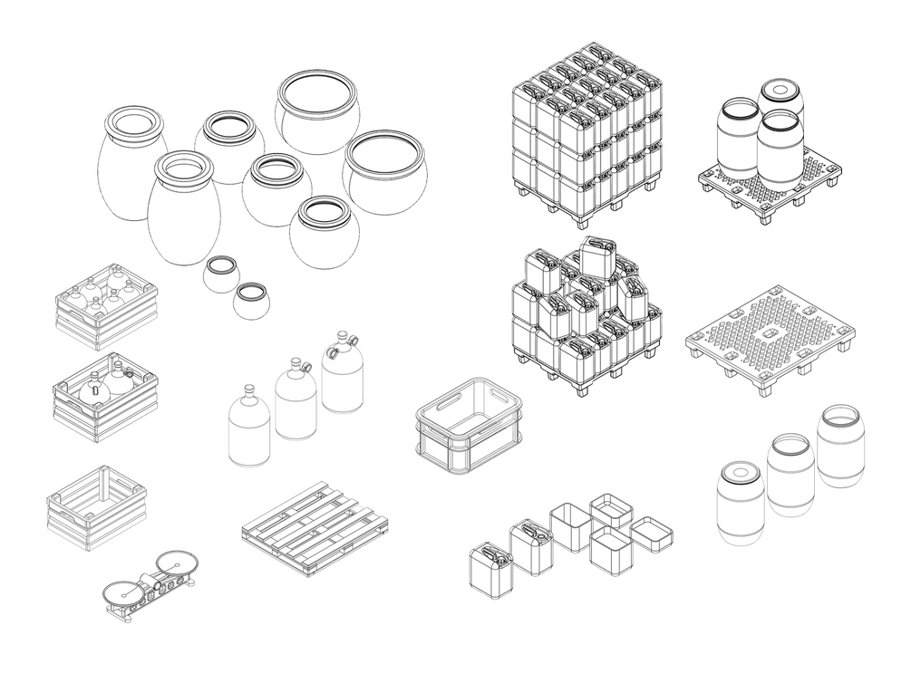 - plastic pallets with barrels